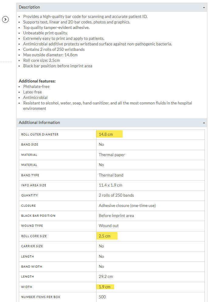 Myyntierät laatikoittain. Laatikossa kaksi rullaa, rullassa 250 ranneketta.